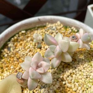 ティチュバンス錦 (グラプトベリア属) 別名 アプリコット美人✨ 1月に投稿して、1月末にチョンパ✂️しました(*˘꒳˘*) ぷりぷりで斑入りの赤ちゃん👶が、すくすくと育っています(*´˘`*)♡ 大きくなってね~(ㅅ´ ˘ `)♡