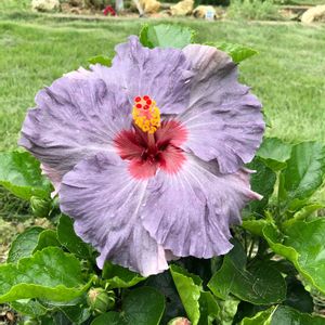 ハイビスカス デニムブルー 2番花咲きました! 雨に濡れて花弁が。。。 色はもう少しキレイなブルー💙💜です!