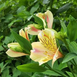 アルストロメリア 花びらの内側の点線が個性的です💚 色の種類は多いようですが、この黄系の花が柔らかい感じでお気に入りです🍀