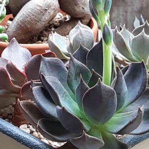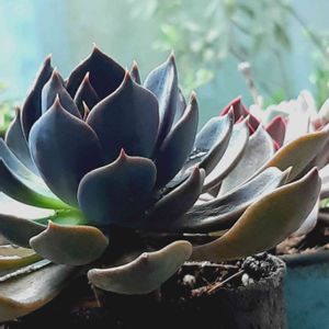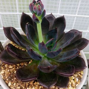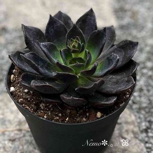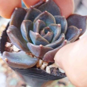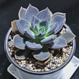 独特の色合いが素敵な子。黒系は相性が悪いのか駄目にしてしまうことが多い気がする。親株が痛んだ際に捥いだ葉挿しから復活してくれた頑張った子(*´ω`*)