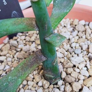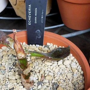 ダークムーン(エケベリア) エケベリアの花言葉… 「優美」「たくましさ」 「穏やか」「風雅」 HCの見切り品 ¥100 半額でもいいんちゃう?と思いながら、幹が太いので、新たな芽と葉さしを期待して、育てて見ます😄