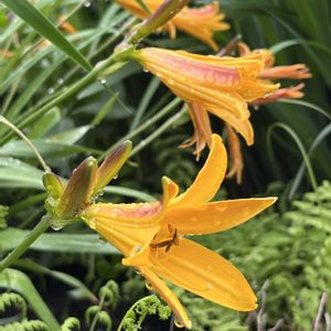 皆さん、こんにちは。 今日も2投目をお送りします😅 5月1日に咲いた花壇の日光黄萓(ニッコウキスゲ)ですが、今朝3か所目が咲きました😄 他の2か所の株と違って、我が家で一番日当たりの良い場所にいます。日当たりが良いから、早く咲くんじゃね?と思われるでしょうが、毎年この子が最後に咲くんです。元々の産地の違いなんですかね。花も立派な気がします。 ①②③今朝9時過ぎ、まだ細かい雨の中で撮ったもの ④⑤お昼過ぎに撮ったもの