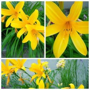 お庭には、今の時期薔薇以外にも沢山の花が咲いてます。 左上がペンステモン、左下がジキタリス。 右上がニッコウキスゲ、右下がオルレアです。 春~初夏の花に溢れたこの時期が一番好きです~🎵