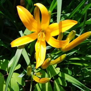花が咲いていました。 何の花だろう? 調べてもニッコウキスゲとキバナカンゾウの違いがよく分からなくて。 お花が横を向いているか上を向いているかで違うらしいので、明日もう一度確認します。 追記 調べたらユリ科ワスレグサ属は交配可能なのだそうで、雑種も色々できるのだそうです。 というわけで、キスゲかカンゾウ(漢字では萱草と書くのだそうで、漢方のカンゾウ甘草とは別だそうです)の仲間ということで、限定できませんでした。 お花の世界も奥が深いな😊
