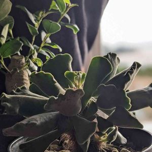 先日投稿されているのをお見掛けして、 欲しい子ランキングに~(*^^)v クリステイタスさん(*´꒳`*)~❀ ぷっくり葉で縁のフリルがカワイイ💕 愛称は、餃子ちゃん(笑)😆🤣😆 オレンジの気根がファッサーしとります。