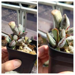 花市でお手頃価格🍔🍟🥤 で出会えました( *˙ω˙*)و グッ! 🇹🇼大疣紅苦瓜 Adromischus marianiae v.herrei 'Durian Red' アドロミスクス レッドドリアン 以前いた1号は⭐になりました😭 2.3号ガンバレ📣('ᴗ' )و ∧_,,∧ /\. (`・ω・´) /ヽ | ● ⊂ ⊃ ● І ヽ// ノ \ / (ノ⌒ヽ)