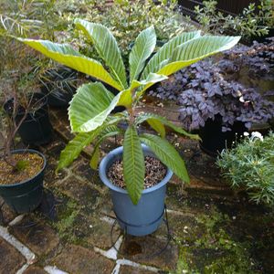 前回投稿から約半年(2024年12月4日) 我が家の、食べた種から育ててるビワです😊 春前に鉢増ししました😊 鉢増しする時に、4株育ててましたが、2株に絞りました😊 葉っぱ🌱が凄く大きいです😁