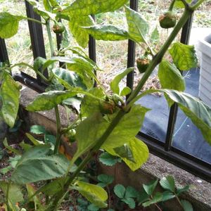 発芽しなかった種が混ざったままツゲの木の下に捨てた土から勝手に出で育っているパプリカ。 小さな実がポツポツと出来ています。 さすがにこれからは育たないだろうな〜。 でも枝葉がまだ生き生きと元気なので片付けるのが偲びない(笑) 小さな実をピクルスにでもして、そろそろ片付けた方がいいのか。 もうちょっと粘って見るか…。 パプリカは実になってから収穫まで2ヶ月近くかかります(笑) 年を越さないうちに片付けねば😅