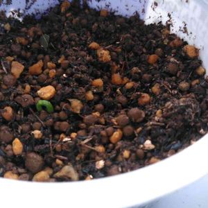 仕事上のお客様の家の庭に成っていて、目の前で2つ採って頂いた夏みかん。 美味しくジャムにして食べ終わりましたが、種が沢山あったので水に沈んだ重い種だけをダメ元でヨーグルトのカップに蒔いたのです。 今朝、いつもの様に水をあげると何やら緑のものが…😮 よく見ると芽が出ていました♪😆 やはり芽が出るって嬉しいし楽しいですね! ちゃんと育つかは解りませんが😅