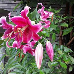 おはようございます ユリが咲きました⚜️ 蕾の時のうっすら透けて見えるピンク 中は濃いピンクで 庭の端っこで毎年咲いてます