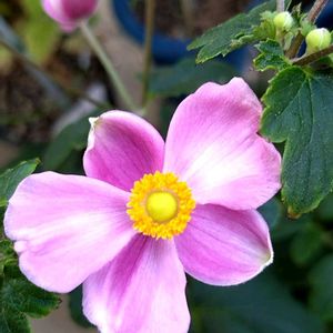 今日のお花 (秋明菊) いつもの散歩コース🏥の花壇で可愛く咲いてます