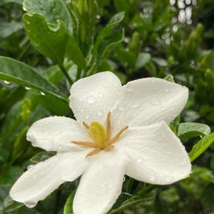 お庭に良い香り漂う〜〜と思ったら✰⋆。:゚・*☽:゚・⋆。✰⋆。:゚・*☽:゚・⋆。♡ 🤍クチナシの花 🤍💛 開花を始めてました! 昨年は香りと共に美しい姿さえ見れずにいたので✨🙌 強 剪定したせいでしょうか…花数に期待出来そうです💖 雨でもお庭に広がる香と… やっぱり白花にˊᵕˋ♡ 癒されます〜 今日はこちらも一日中雨予報 台風被害がありませんように〜 良い午後を☔️🍵