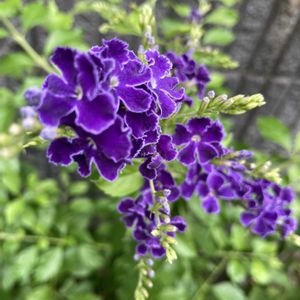 デュランタ宝塚💜 お花が少ないこの時期 漸く咲いてきました💜 紫🟣に白🤍の縁取り 癒されます〜🙋♀️💜
