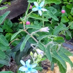 種がこぼれて道端に咲く ルリトウワタ(瑠璃唐綿) 水彩絵具がこぼれたような色合い 西洋では結婚式のアイテムだとか💕