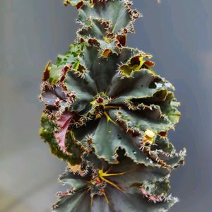 2025.1.14 レックスベゴニアのダークマンボ💃🏻酷暑で弱ってしまい一旦葉を落として様子見してたところ、ここまで復活 今度は寒さに耐えれるか問題🥶 初夏にお迎えした時は名前の通り黒い葉っぱだったのが、こんな色に また黒くなるかなー