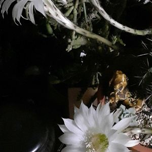 夜に咲くサボテン🌵の花、妖艶な感じお昼にみた時は、清楚な感じさえしたのに、二面性あり?