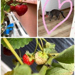 毎日暑いですね🥵 まだまだ🍓さん頑張ってます😅 葉っぱの下で色づいてました💕 みーこ🐈我が家にきて2ヶ月ちょっと❣️ 体重は3倍😆かなり成長しましたよ👍