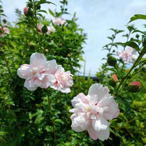 今朝の庭から… 7:10〜8:06 水やりしながら玄関脇から奥へ〜 5️⃣数日前から咲き出した木槿(ムクゲ)