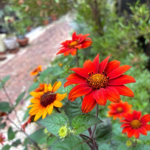 ヘリオプシス ブリーティングハーツ 🌻希少な先祖返り個体😂💔 咲き出してます♪♪ 同系色のマリーゴールドと共に 夏庭の✨スター🌟になっておくれ♪ 夏庭限定オレンジガーデン𓂃 𓈒𓏸◌ ✿ヘリオプシス ブリーティングハーツ 鉢植え/2年目の宿根草/2024年組 ✿フレンチ マリーゴールド /ファイヤーボール コンテナ植え/種まきからの一年草/サカタのタネ