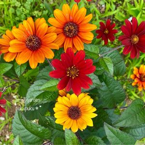 ヘリオプシス ブリーディングハーツ ☆*:.。. o(≧▽≦)o .。.:*☆ 渋めの赤からオレンジ、黄色へと変化していってます。 今のところ葉は緑ですが、銅葉に変化していくのかな?