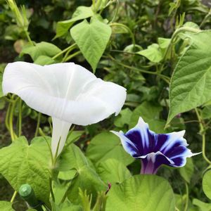 今日のお花☀︎朝顔 何色が咲くか分からず貰った種❣️ 純白が混じってた〜😍 何故か、凄く嬉しかった💕💕 まさかの、、、 今日のお花朝顔も白・・純白だぁ〜🎶🎶 と、、、桔梗咲きスノーフレーク🎶