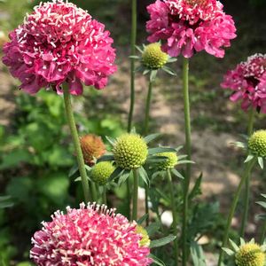 今朝のスカビオサ・・📱 クイズサーモンピンク 次々に蕾が〜🎶 背高ノッポさんでただ今106㎝也 金曜日の蕾たち🏷に参加お願いします〜💕