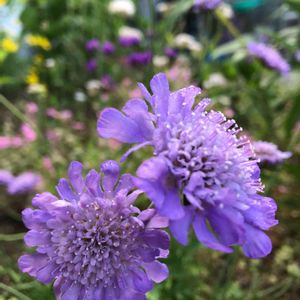 今朝のスカビオサ☀︎☀︎📱 冬越ししたスカビオサ💜💗 すごくバージョンアップ お花がたぁ〜くさん咲いてきました〜🥰 ピンクより少し早目かなぁ〜