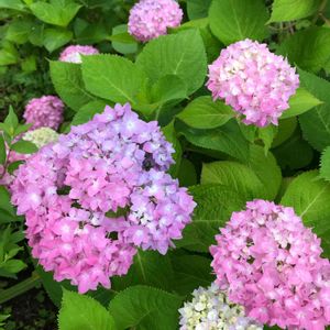 今朝のお庭☀︎☀︎📱 紫陽花5株、5本(?)分です 常緑紫陽花 額紫陽花 山紫陽花 うーん💦詳しい事は分かりませ〜ん🙏 毎日何度も庭に出て自己満に浸っています〜😁🙏