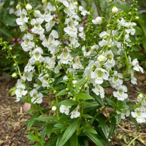 アンゲロニア・セレニータ ホワイトとピンクをお迎え 地植えして10日たちました 後ろに ピンクが隠れんぼ中😁 非耐寒性多年草なので 来年も逢えたら嬉しいな💖