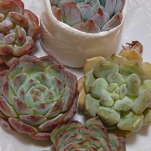 お迎え多肉 ①DAISO 多肉 チワワエンシス、リラシナ、プリドニス、冬美人、ピンクルルビー、ブルーサプライズ、ヘラクレス ②産直にて購入した夢玉、ビロード ③④Lierさん 初心者さんセット 桃太郎、雙花、パンジー、シルエット、アルケイン、デントラチェム、メキシカンスノーボール ⑤Porto さん 1月の福箱 ブラッククイーン、マディバ、キュービックフロスト、ジャイアントマジック、ホワイトシャンペン、シュガーゼリー、リラシナ×ラウイ、ソブリン、ファイヤーピラー、ジュピター、ホワイトザラゴーサ、ピンクザラゴーサ ポチって届き待ちが後2件ある上に 他にもお迎えした子たちが7苗いる…😅 ポチった子達が届くまで、 しばらく買わずに我慢する予定だけど…ね? 我慢出来るかな? つい見ちゃうんだよね…