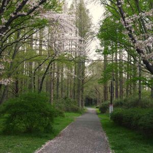 今朝の散歩道です。 空は晴れているのに、お昼前から☔が、降るらしいです。メタセコイアの森に来て、空撮りしました。いつの間にか、葉っぱ🌿が沢山出て来てました。