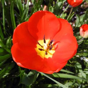 今朝の散歩道です。 チューリップ🌷が、全開しています。