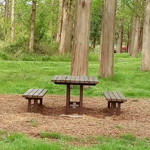 今朝の散歩道です。 メタセコイアの森で、今朝も休憩、 coffee timeしました。