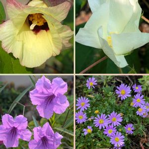1️⃣斑入りのポーチュラカ 中々沢山のお花がいっぺんに咲かないのですが時々咲くと綺麗です🤗 2️⃣ワタのお花が白から ピンクになりました🩷 台風の被害が心配ですね😟 早く通り過ぎてくれることを 願います🙏