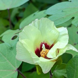 ご近所さんに苗を頂いたワタの花が咲きました🙌🌼🌱