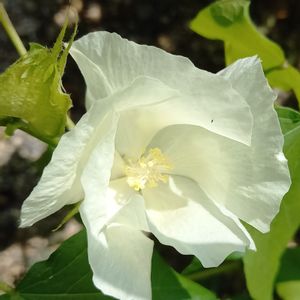 棉の花が咲きました。✨✨ 儚げな花びら…。💕🌿