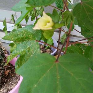 ワタの花、ブラウンかな?初めて見た。 初めて鉢に植えてみてる、 どーなるのかな??