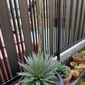 花芽だった。 アガベの血を引いているけど、確か開花しても枯れなかったはず。 壁|ω•`๑) 。oO(咲いて枯れると周りに子株がいないし...)
