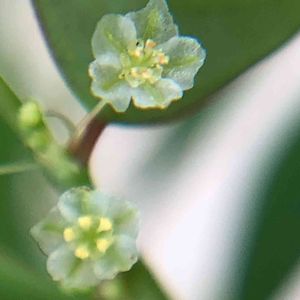 ナガエコミカンソウの雄花チャレンジしてきました 表に見えるのは雌花の事が多いのでなかなか探せない 裏側の枝の分岐付近を探してようやく発見 上が雌花 下が雄花