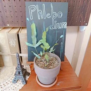 シダ植物増殖中🌱🌱🌱 フレボディウム・ブルースターの植え付け完了。 マットな質感と青みがかったグリーンが綺麗です✨ 頑張ってお世話するのでたくさんの葉を繁らす大株になってね。 昨日、右のアスプレニウム・エメラルドウェーブくんとこの2つでどちらにしようか迷っていたら、お店のお兄さんがバックヤードからフレボディウム・ブルースターの小さな苗を出してくれて100円で売ってくれました。 どちらもすごく欲しかったのでラッキーです💕