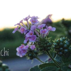 今日もおつかれさまでした… 夕方少しだけ散歩… 夕焼けをバックに 「ランタナ」の花と実を💮🍀✨😊☘️ BGMは秋の虫の声🎵
