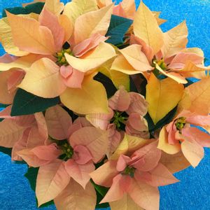 ポインセチア✨ゴールド✨ *・゜゚・*:.。..。.:*・*:.。. .。.:*・゜゚・* ピーチイエローからオレンジイエローへ🧡 どんどん深みのあるオレンジ色に🍊変わってきました❣️✨ ここ2年くらいの新しい品種ですが このpicより実物はもっと赤みがあり なかなか素敵な色になってます❣️💕🤗