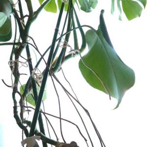 窓辺のモンステラ♪ これからの時期に新しい葉が開きます。 くるくる巻いているのが新しい葉です。
