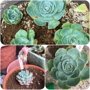 おはようございます🙇 本格的に☔梅雨入りしました😥 どしゃ降りです😅 七福神美尼の形が崩れ始めたので😅 🌼花を✂️カット 勿体無いから❗ 子株と一緒に鉢にin😄