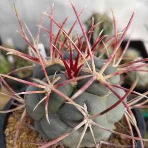 テロカクタス 緋冠竜 成長は本当のゆっくり。 メモ: テロカクタス 緋冠竜 Thelocactus hexaedrophorus var fossulatus 天晃の強刺変種 新トゲの先端のみ赤い。