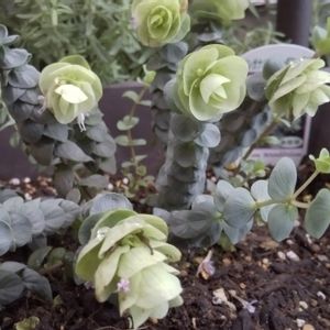 オレガナム ロタンダ フォーリア🎵青い葉が花のように見えますが、ピンクの小さい花は枯れました➰😅
