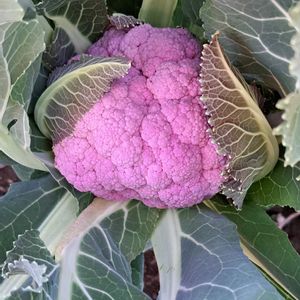 カリフラワーが顔を出し始めました あとオレンジがあるはず カリフラワーは採れ立てがモチモチしていて美味しい😋