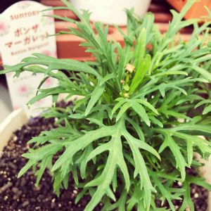 ボンザマーガレット🎵 サントリーのお花 ドーム状に 咲き広がるらしい… 横長のプランターに植えたのは 失敗のようだわ〰️〰️😅