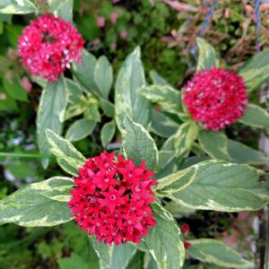 斑入りペンタス🌿✨🌿 冬越し成功からの蕾♡嬉しいです🥰 ➡️真っ赤なお花が咲き始めました♡ 🏷️斑入り見つけ隊♪ 皆さんいつも有難うございます🫶