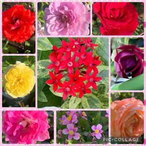 こんにちは♪ 今日も暑かった🥵 今日の庭より バラ🌹、斑入りペンタス、秋明菊 2枚目、桜色カリシア、春に伸びた部分、鉢分けしておいたのがモリモリになってビックリ‼️